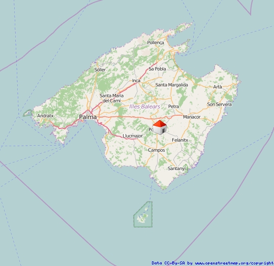 Der Ort liegt in traumhafter Kulisse westlich zu Füßen des Berges „Sant Salvador“. Hervorzuheben ist der Hafenort Portocolom, der zur Gemeinde Felanitx zählt. Die Bucht von Portcolom mit seinen Bademöglichkeiten ist nur etwa 15 km entfernt und ist damit in rund 15 Minuten erreichbar.