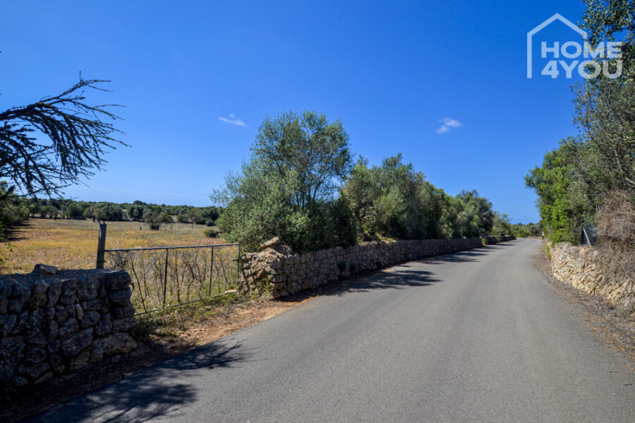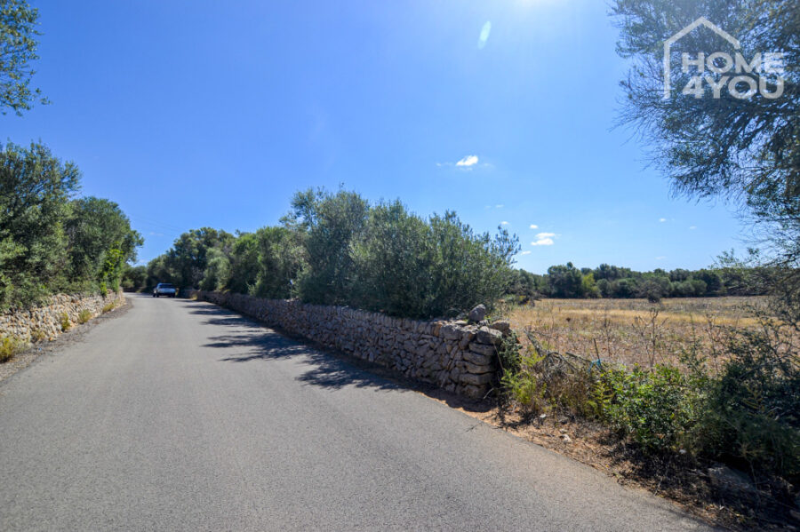 Das rund 15.000 qm große Grundstück mit alten Mandelbäumen und den typisch mallorquinen Steinmauern liegt unweit des Ortes Ses Salines im Gebiet "Cas Perets" an einer gut befestigten Straße.