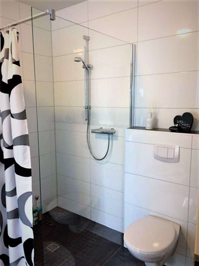 Eine Solaranlage auf dem Dach beheizt das warme Wasser und wird ggf. durch die Heizung unterstützt