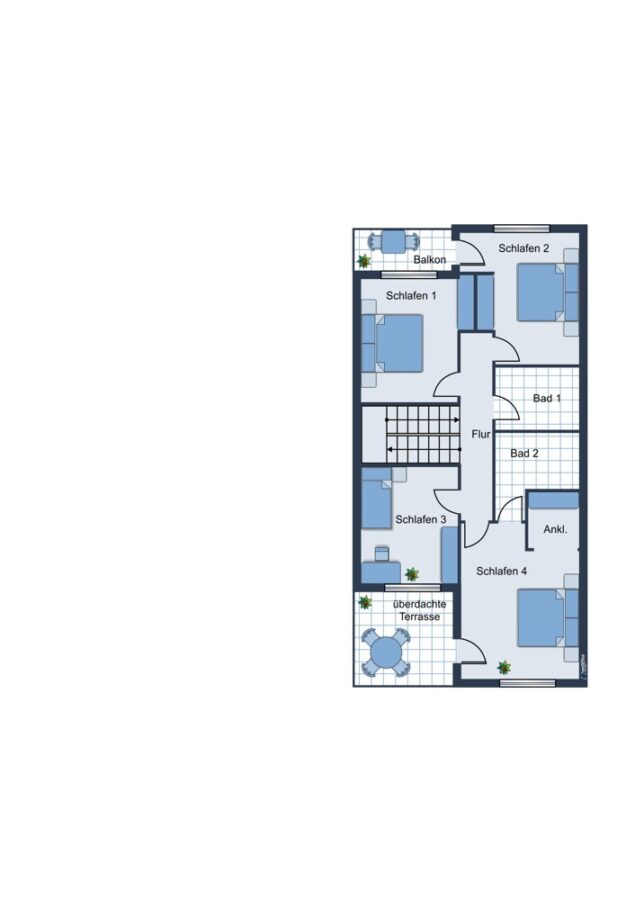 Die Zimmer haben jeweils einen Zugang zum Balkon, der eine schöne Aussicht und bei lauen Sommernächten Abkühlung verspricht. Die gesamte Ebene ist mit einem hochwertigen Laminatboden ausgestattet, der eine angenehme Barfuß-Atmosphäre und entsprechende Kühle im Sommer schafft.