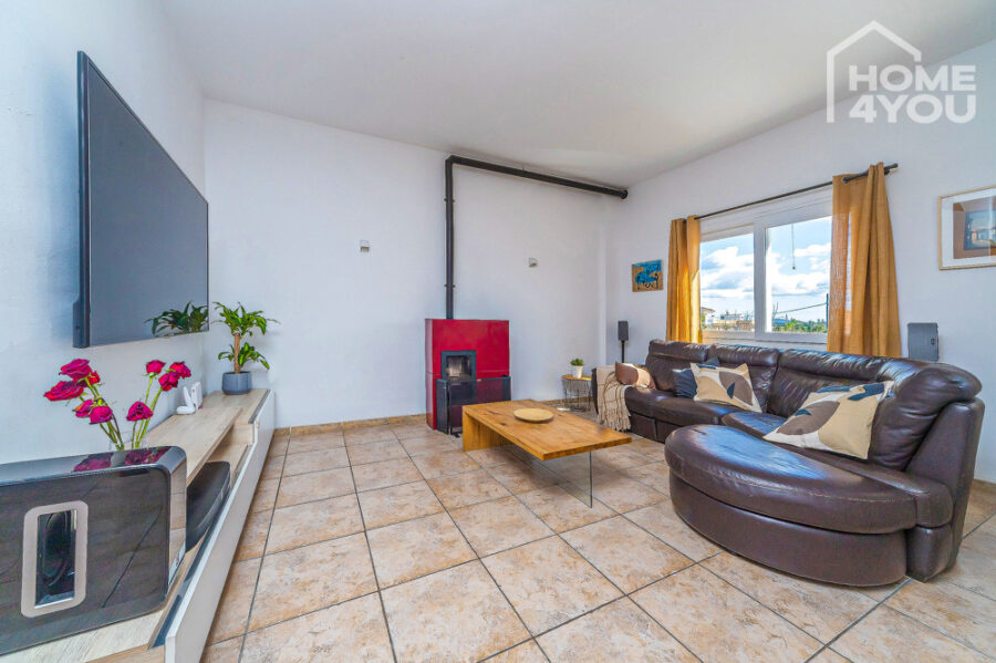 Dieses Haus besticht durch seine Helligkeit in der ersten Ebene, so wie durch die warmen erdfarbenen Steinfliesen.