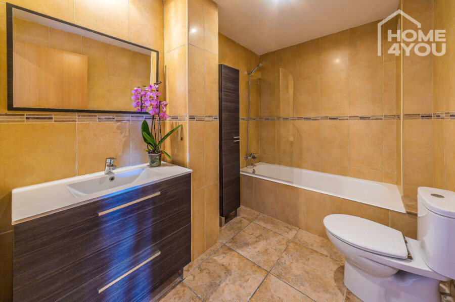 Das Master-Schlafzimmer umfasst zusätzlich ein praktisches Ankleidezimmer mit Schuhschrank und ein Bad en suite. Hervorzuheben sind die moderne Einrichtung, eine Badewanne mit Dusch- Glasabtrennung, die Rainshower-Dusche und der große Spiegel, der das Badezimmer noch größer erscheinen lässt. Ein weiteres modernes Badezimmer rundet diese Ebene ab und bietet eine weitere Spa Oase.
