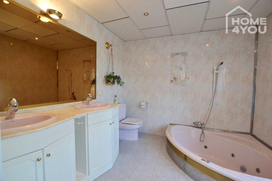 Im gesamten OG befindet sich der große Master-Bedroom mit Meerblick und "bad-en-suite".