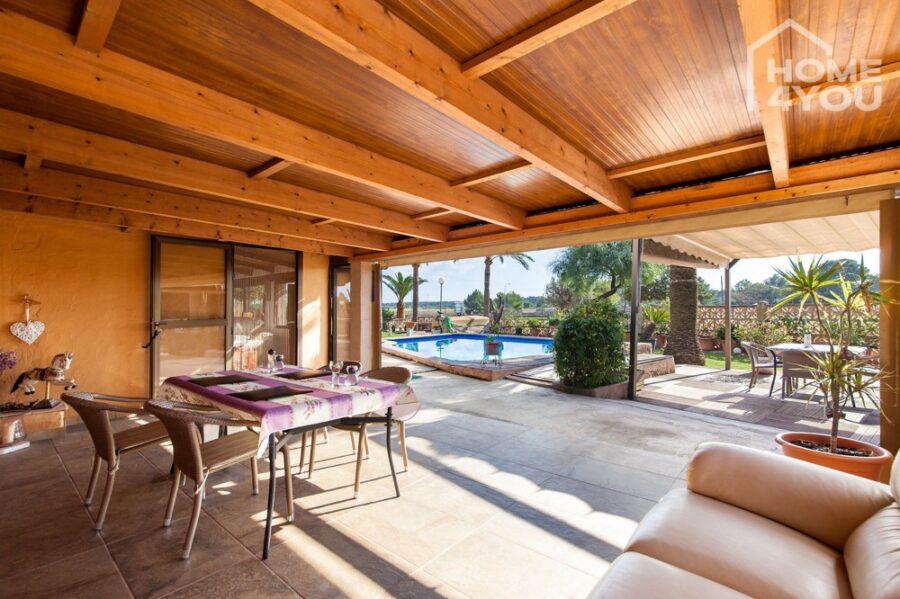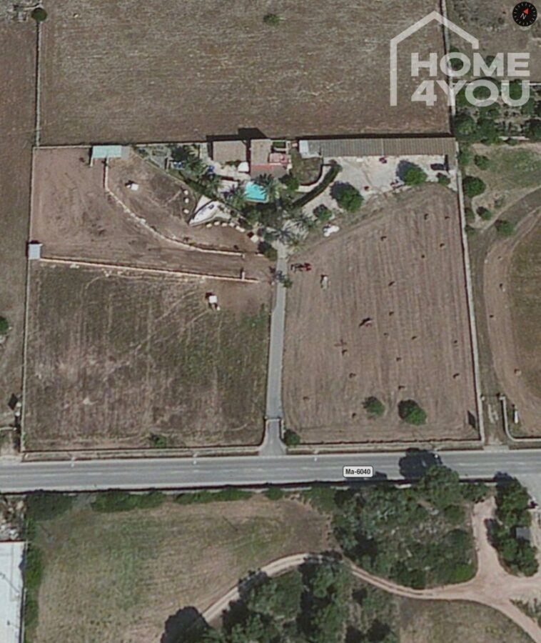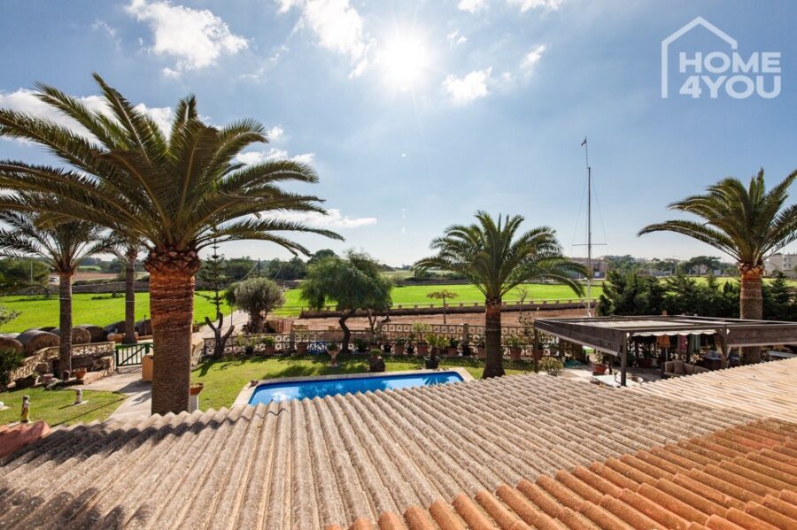 Direkt am Ortseingang liegt das Anwesen auf einer leichten Anhöhe und bietet alles, was eine typisch mallorquine Finca zu bieten hat.