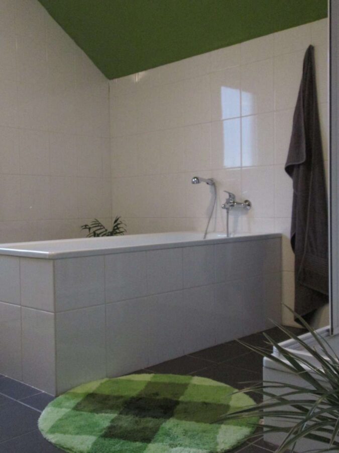 Großes Badezimmer mit Wanne und Dusche, sehr geschmackvoll ausgestattet