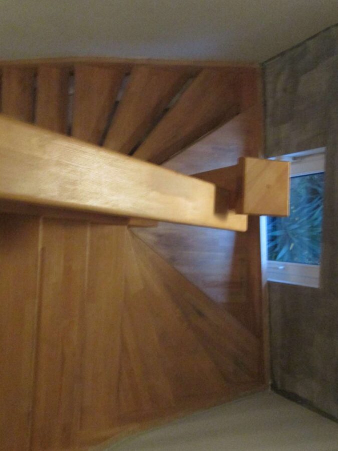 Im Dachgeschoss sind ein Tageslichtbad mit interessanter Badewanne sowie Dusche und drei Schlafzimmer vorhanden. Sie können von hier aus auf dem wunderschönen Holzbalkon hinausgehen und den Blick auf die umliegenden Felder schweifen lassen.