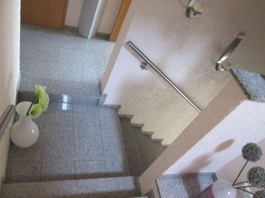 Im Erdgeschoss werden Sie bereits in der hellen Diele mit hochwertigen Granit-Böden empfangen. Von hier aus gelangen Sie in das große Wohn/Esszimmer und weiter zur offen gestalteten Küche. Die Küche ist maßgefertigt und kann übernommen werden.