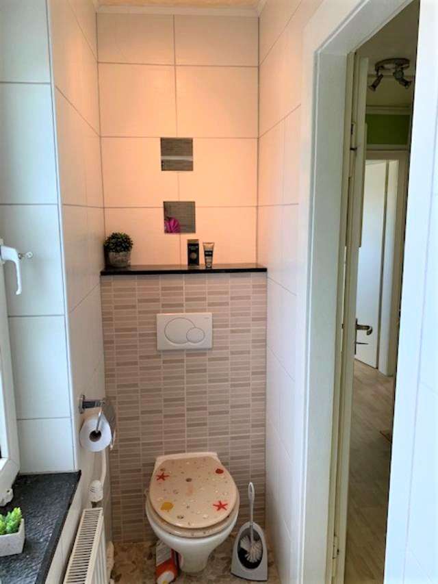 Im Obergeschoss finden Sie ein neueres Badezimmer mit Dusche zwei Fenster und WC . Drei Schlafräume mit Einbauschränken, ein Raum ist etwas kleiner