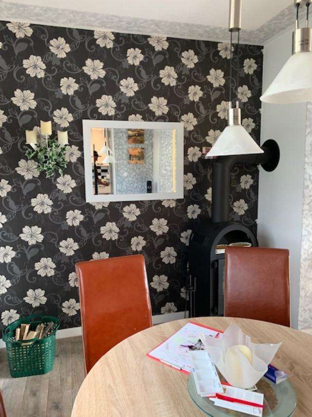Im Erdgeschoss befinden sich Wohn-/Esszimmer mit Ausgang auf die Terrasse und in den Garten. Außerdem die Küche, Diele und neues Gäste-WC.