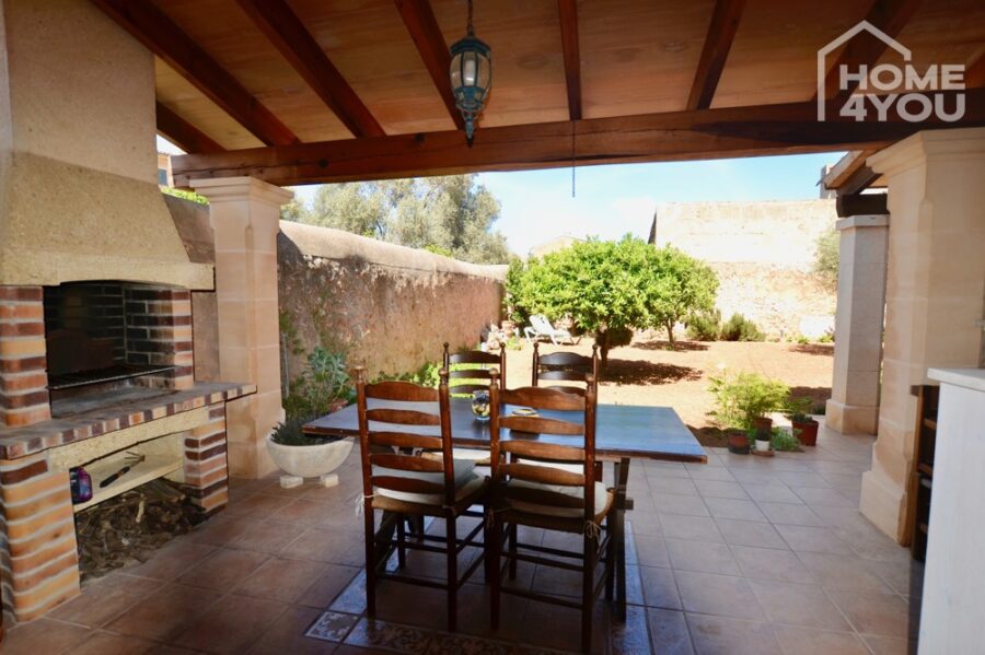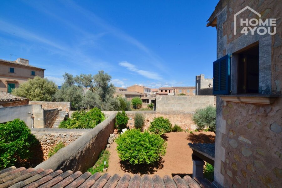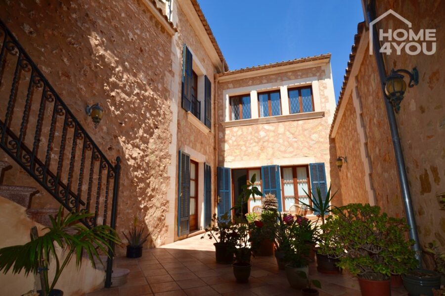Durch einen historischen Torbogen betreten Sie das typisch mallorquine Entree mit den für diese Region typischen Steinwänden.
