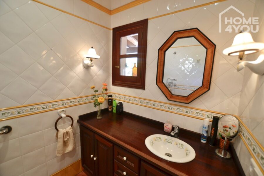 Im EG befindet sich der gesamte Wohnbereich mit Wohnzimmer, Esszimmer, einer geräumigen Küche, sowie ein Gäste-WC. Von der Küche und dem Wohnzimmer gelangen Sie auch in den idyllischen mediterranen Garten mit Zitronen-/, Orangenbaum und eine alte Olive.