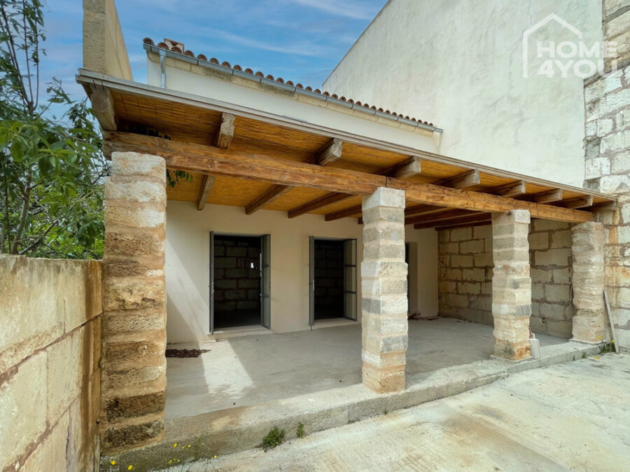 Das ganze Haus hat eine neue Wärmedämmung, neue bodentiefe und doppelverglaste Fenster, die sich zur Terrasse öffnen, sowie neue Fensterläden und die Außen-Fassade, Terrasse und Veranda mit typisch mallorquinischen, alten Sandsteinsäulen, die dem Ganzen ein mediterranes Flair verleihen. Der Aushub für den Pool ist bereits fertig.