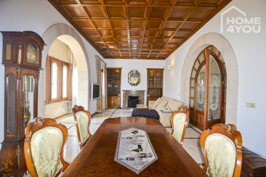 Das beeindruckende Stadthaus im Herzen von Ses Salines besticht durch die hochwertigen Materialien, Böden und Holzarbeiten.
