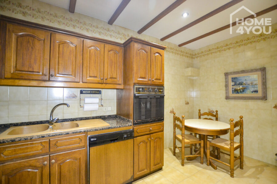 Die aus Massivholz errichtete Küche ist in gutem Zustand, kann jedoch leicht auch in eine Top-moderne Küche umgebaut werden.