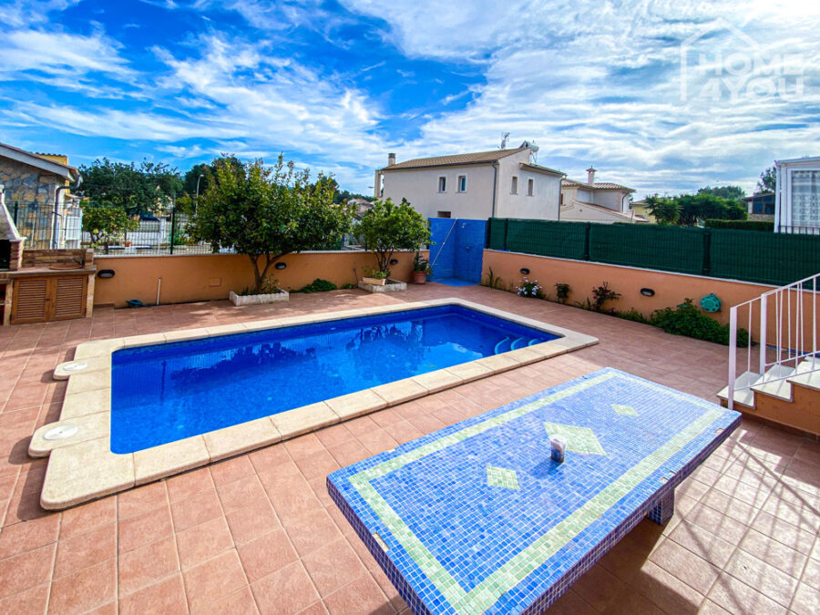 Im Außenbereich befindet sich der große Pool in dem Sie das ganze Jahr über eine Erfrischung bekommen. Hier befindet sich auch die Außenküche, in der Sie leckere Speisen zubereiten können.