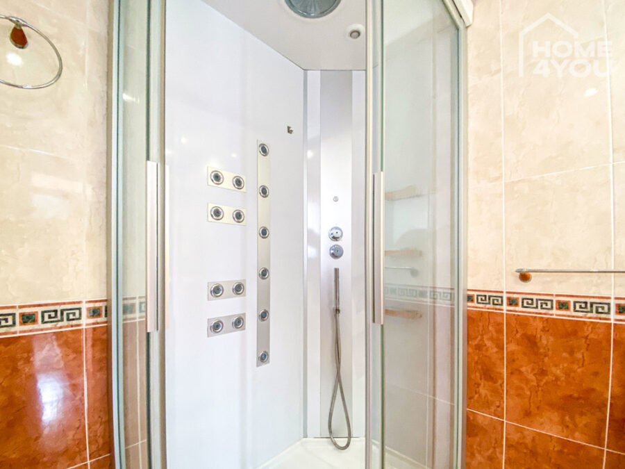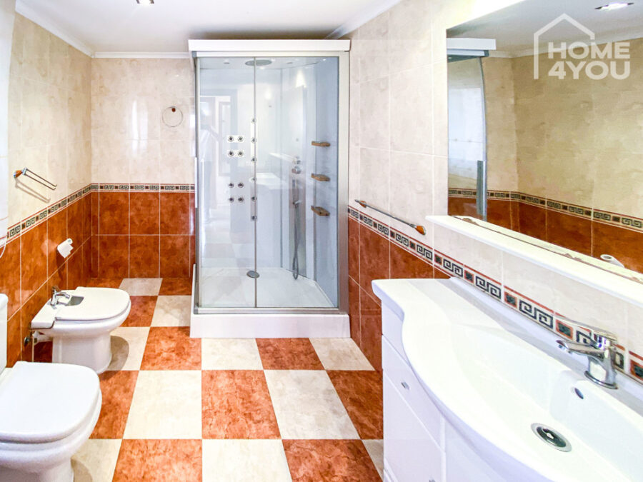 Im 1. OG befinden sich vier Schlafzimmer und zwei Bäder. Das Gebäude ist voll klimatisiert und sorgt damit in den Sommermonaten für angenehme Frische und in den Wintermonaten für mollige Wärme.