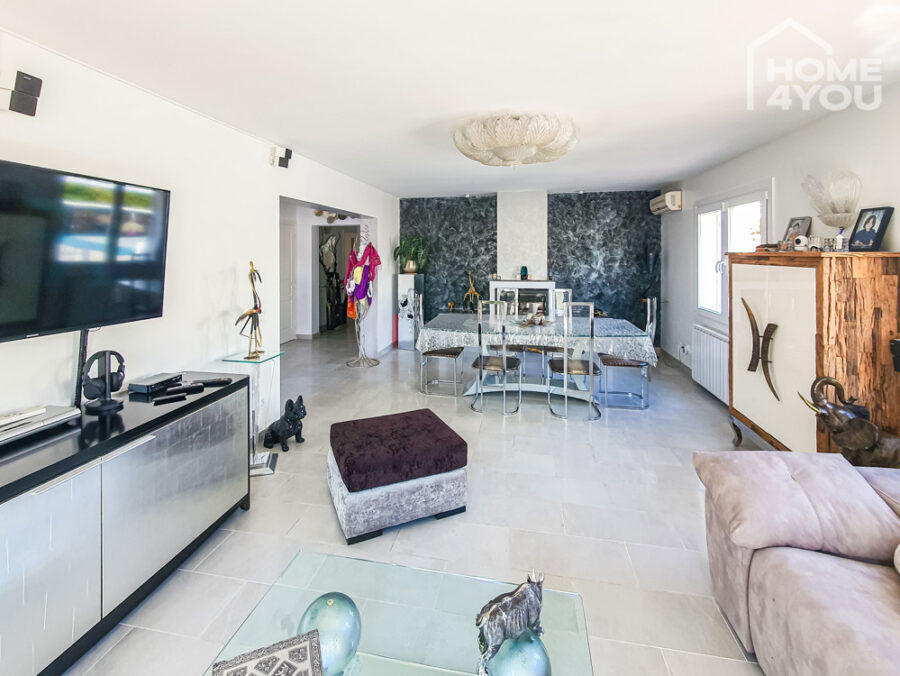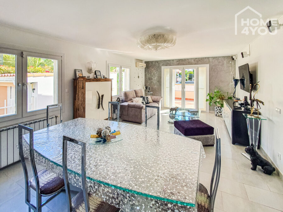 Der gemütliche Wohn/Essbereich liegt direkt an der großen Sonnenterrasse.
