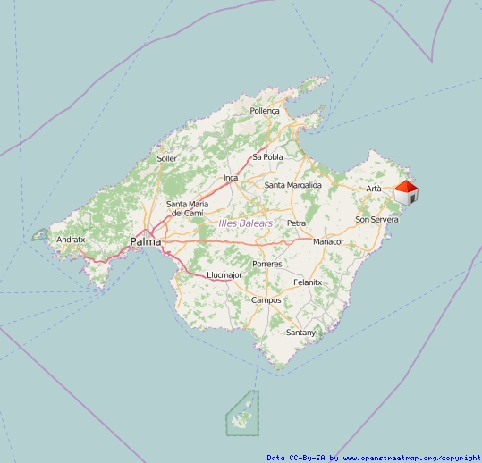 Die Wohnanlage befindet sich in ruhiger, ungestörter Lage. Die beliebten Touristenorte Cala Ratjada oder Capdepera sind mit dem Auto nur 10 Fahrminuten entfernt.
