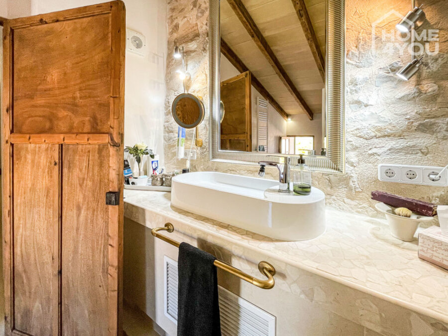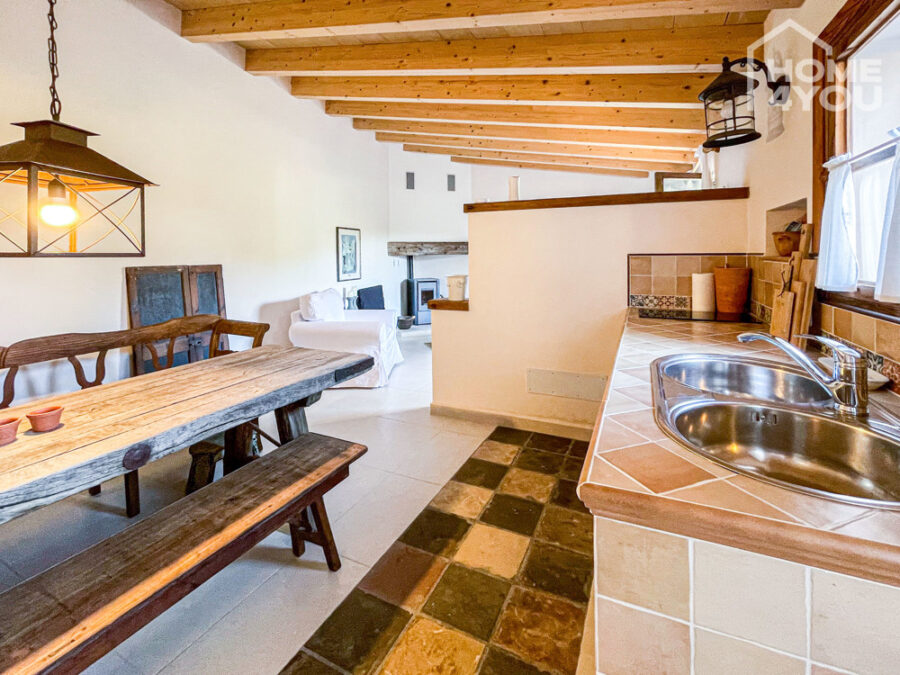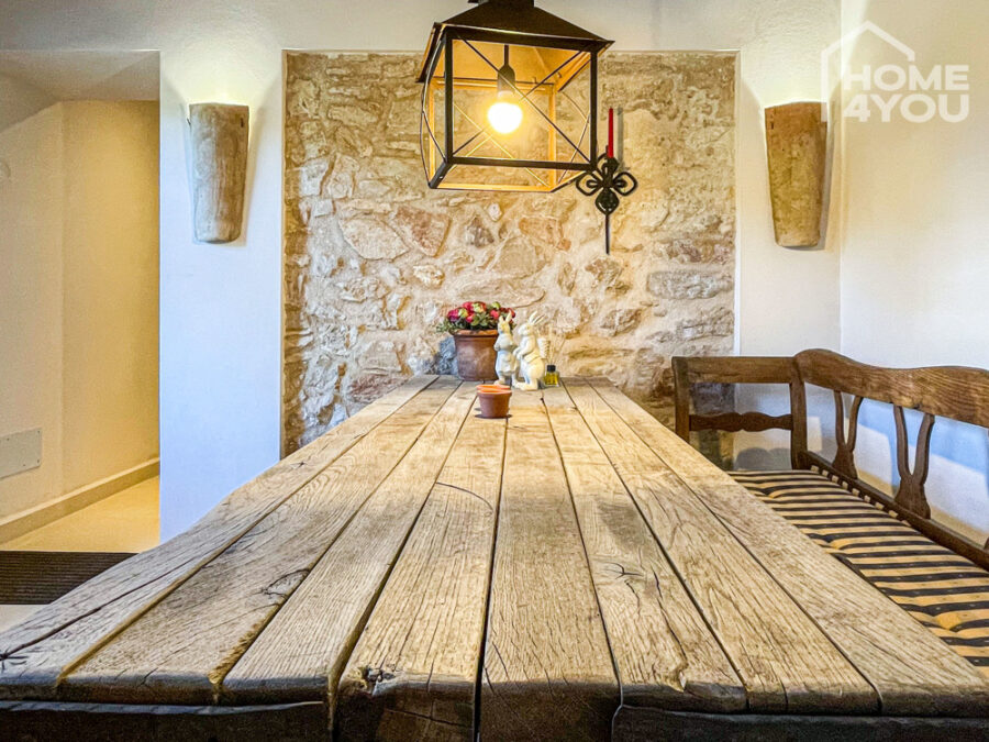 Die hellen Räume mit ihren vielen schönen Details, wie der landestypische Holztür im WZ, einem Rundbogen zum Flur, Highlight-Wände mit Naturstein und den typische Decken-Holzbalken begeistern schon in der ersten Sekunde.