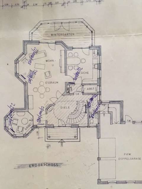 Auf einem Eckgrundstück von 1.420 m² mit wunderbarer Südlage, verfügt die Immobilie über 390 m² mit 9 Zimmern über drei Etagen. Davon ca 72 m² als Souterrain-Wohnung mit seperaten Eingang.