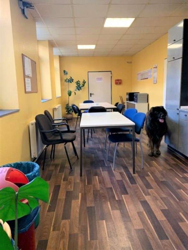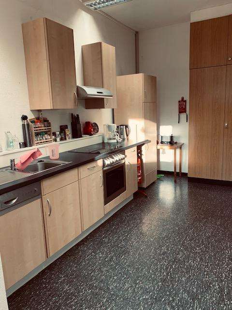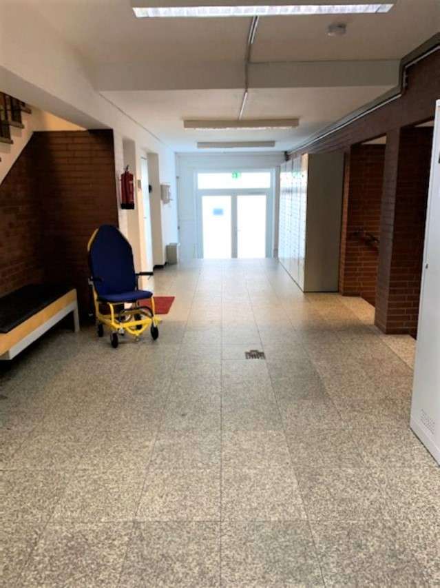 Im Erdgeschoss eine ein großes Unternehmen die sich sich um die Beförderung von Kranken , Rollstuhlfahrern, Behinderten sowie Liegendenbevörderung kümmern. Mit 200 Mitarbeitern und 100 Fahrzeugen ist das Unternehmen das Größte hier im Kreis