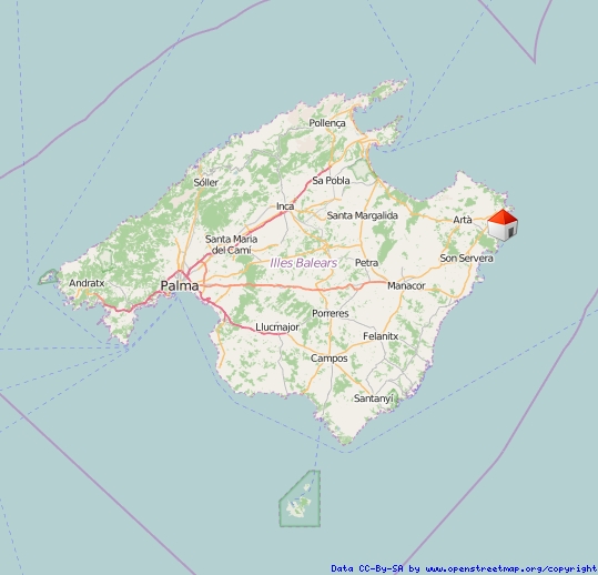 Die Wohnanlage befindet sich in ruhiger, ungestörter Lage. Die beliebten Touristenorte Cala Ratjada oder Capdepera sind mit dem Auto nur 10 Fahrminuten entfernt.