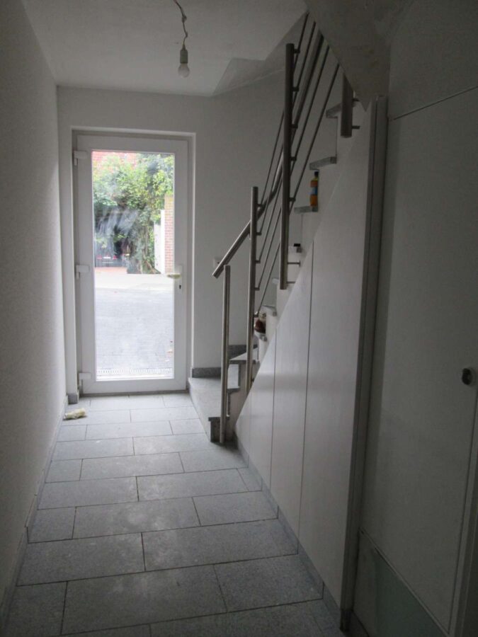 diese Wohnung ist vorne halb im Erdgeschoss und hinten halb im Keller