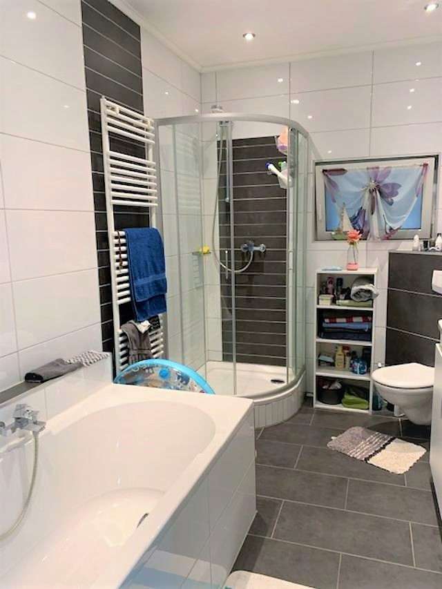 1 Badezimmer mit Dusche 2 Waschbecken inkl Fenster