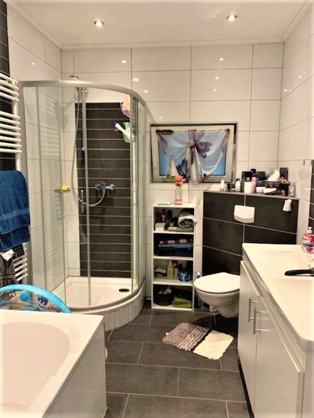 1 Badezimmer mit Dusche und Badewanne 2 Waschbecken inkl Fenster