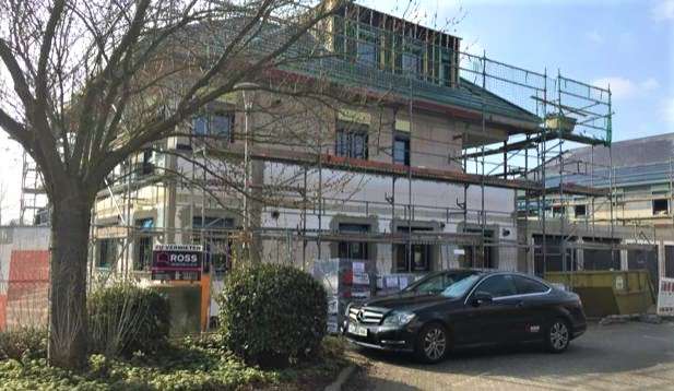 Das Mehrfamilienhaus steht mitten in einer gewachsenen Neubau Siedlung