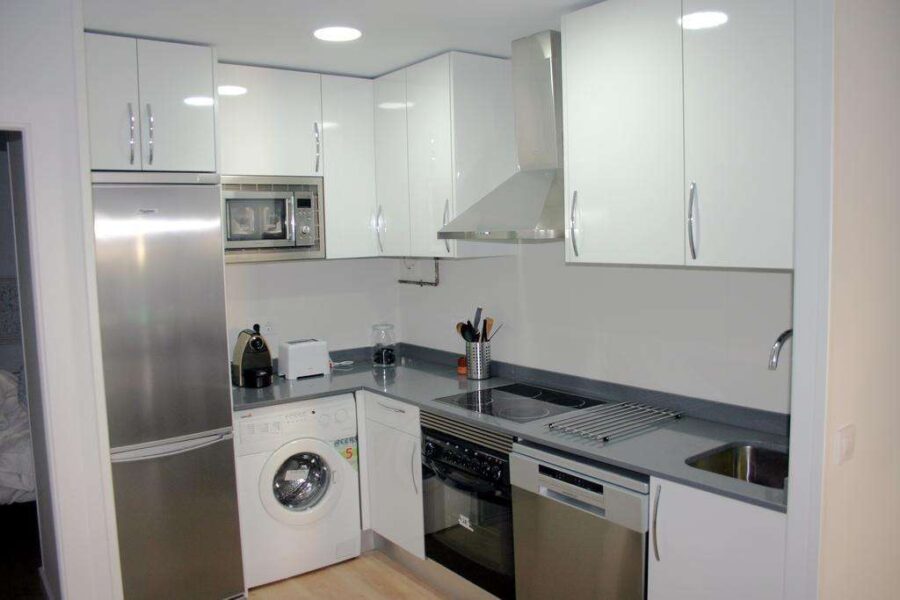 Die Küchenzeile verfügt über einen Geschirrspüler, einen