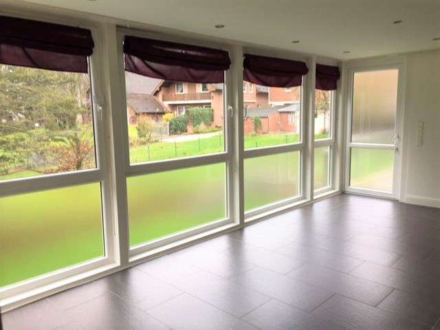 Hier wurden alle Fenster ausgetauscht und die oberen mit einer Folie bearbeitet