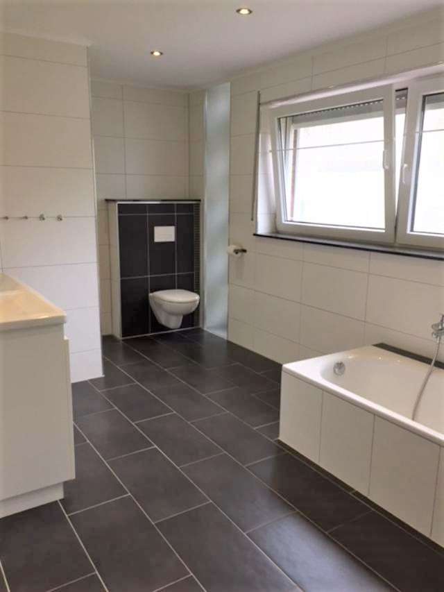 Das grosse Badezimmer mit 2 Waschbecken WC, Wanne und Dusche lässt keine Wünsche offen